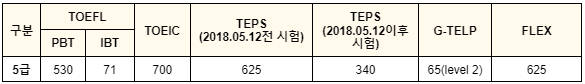 검정시험대체 기준표